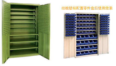 柜门及柜体内壁均可选配挂板,配合零件合及各型挂钩使用,充分利用空间。